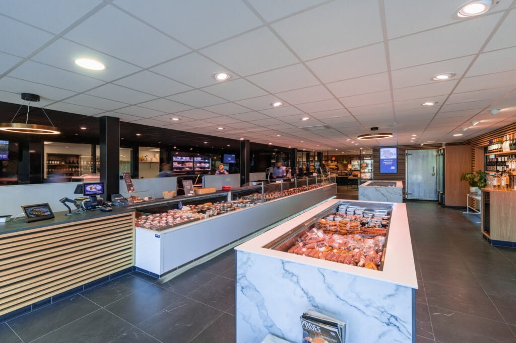 The specific products we use depend on the purpose of the lighting. For example, to comfortably light a greenhouse area you use different lighting than to attractively illuminate shelves. At a cash register it is important not to dazzle customers and employees; on shelves, on the other hand, all products must be well lit. In addition, we also provide good and reliable emergency lighting so that the store meets all safety requirements. We create comfortable and safe shopping environments.