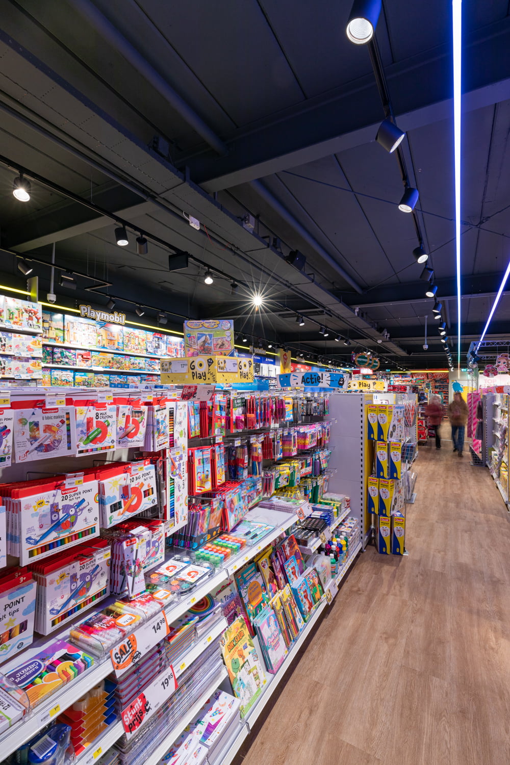 Our light designer designed a lighting plan that captured shoppers’ attention. With the clever use of different lights, attention is drawn to several parts of Intertoys Veenendaal. This partly determines the walking route but also ensures a clear and comfortable shopping environment.