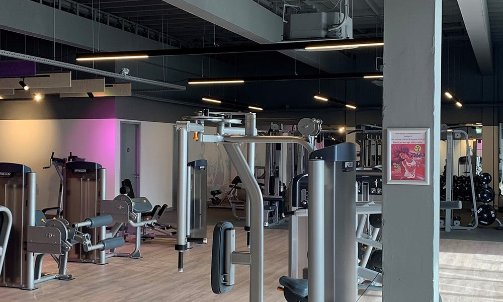 L’identité de l’entreprise est bien reflétée dans l’ensemble des locaux d’Anytime Fitness Beilen par des spots astucieusement placés avec le look violet typique. L’éclairage général est conçu de manière appropriée pour se fondre dans le design épuré, exactement selon les normes d’Anytime Fitness. En bref, un bel et bon environnement pour le sport.