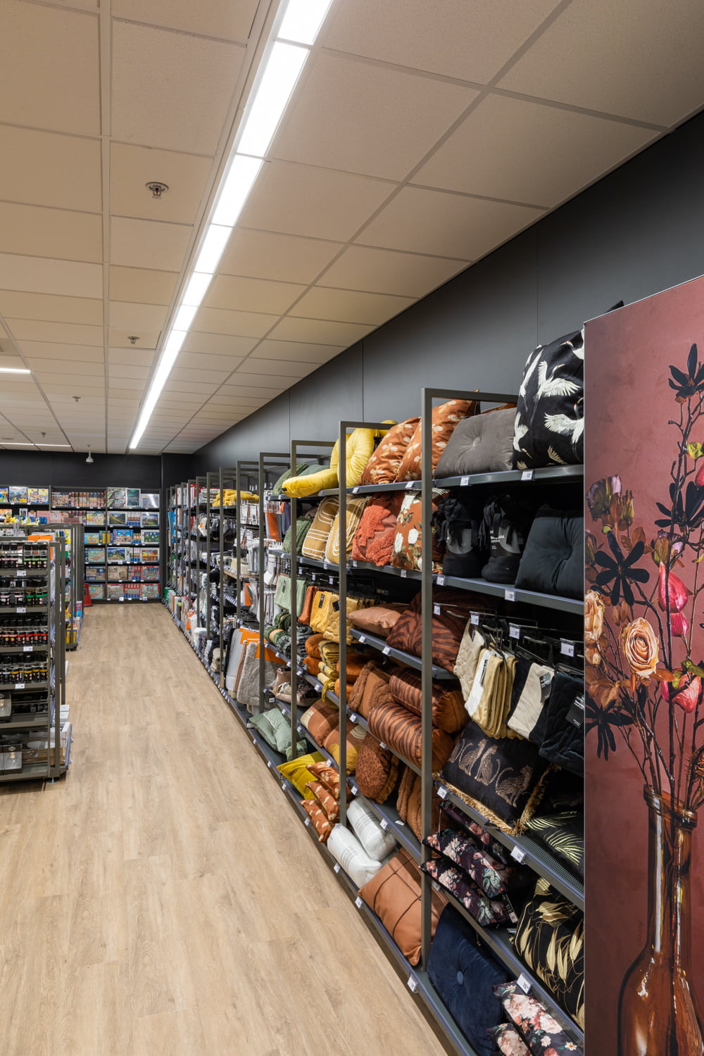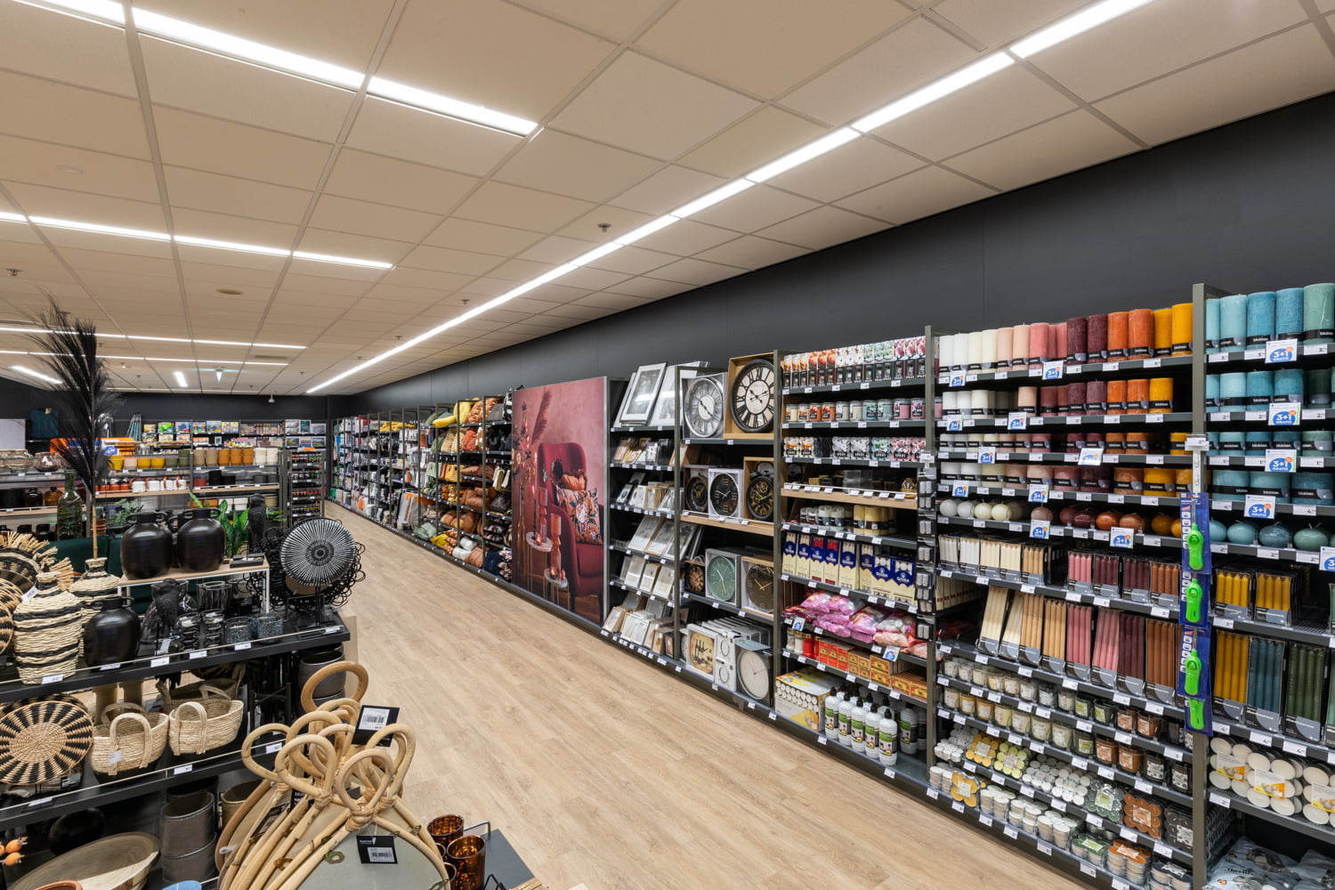 L’utilisation de luminaires encastrés a permis de créer une scène lumineuse calme. En outre, nous avons utilisé des spots encastrés directionnels pour attirer l’attention sur les produits qui méritent d’être mis en valeur. Enfin, l’entrepôt est équipé d’un éclairage d’entrepôt fiable et économe en énergie. Le résultat est un magasin attrayant, conforme au nouveau concept de Blokker.