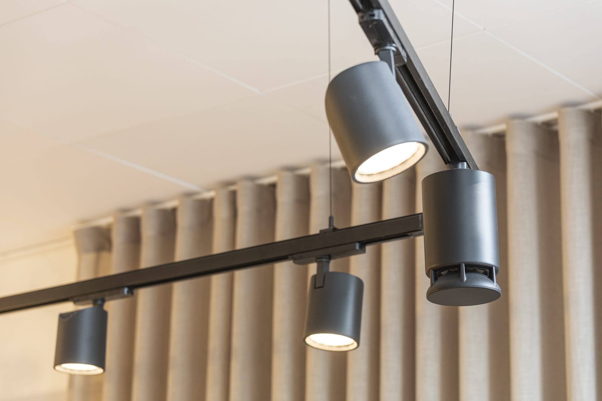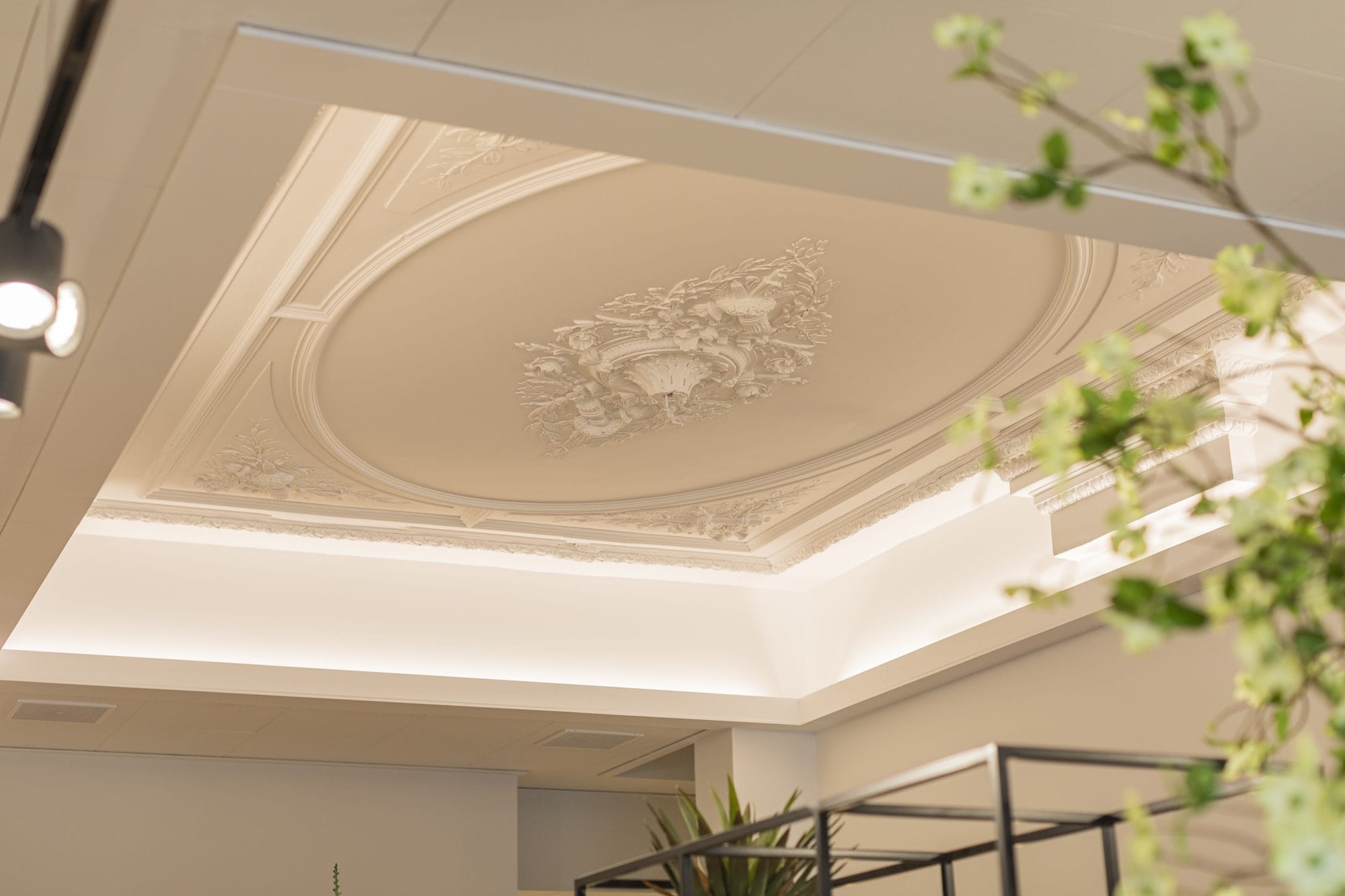 En outre, les locaux de Cosmo Haarlem abritent un plafond monumental qui mérite une attention particulière. Nous l’avons particulièrement mis en valeur en utilisant des bandes LED que nous avons placées dans le carré sous le plafond. Le plafond est ainsi devenu un véritable point de mire. Pour optimiser complètement l’expérience client, nous avons installé le système audio Spottune dans les rails d’éclairage. Les clients bénéficient ainsi d’un son de qualité et d’un éclairage adéquat pendant leur visite.