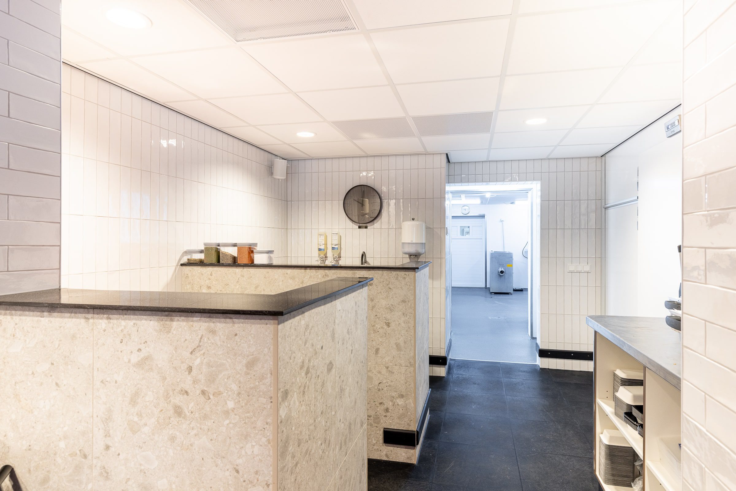 Des downlights encastrés blancs confortables ont été choisis pour les zones de travail situées à l’arrière. Ils fournissent un éclairage homogène et lumineux et contribuent à créer un environnement de travail agréable et sûr pour le personnel.