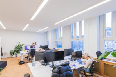 Verlichting die het dag-nachtritme van de mens volgt (circadiane verlichting) blijft een belangrijke trend, vooral in werk- en zorgomgevingen. Deze verlichting helpt om de gezondheid en productiviteit van mensen te verbeteren door de lichtkleur en intensiteit gedurende de dag aan te passen. Benieuwd naar de voordelen van circadiane verlichting voor kantoren? Lees onze blog over kantoorverlichting.