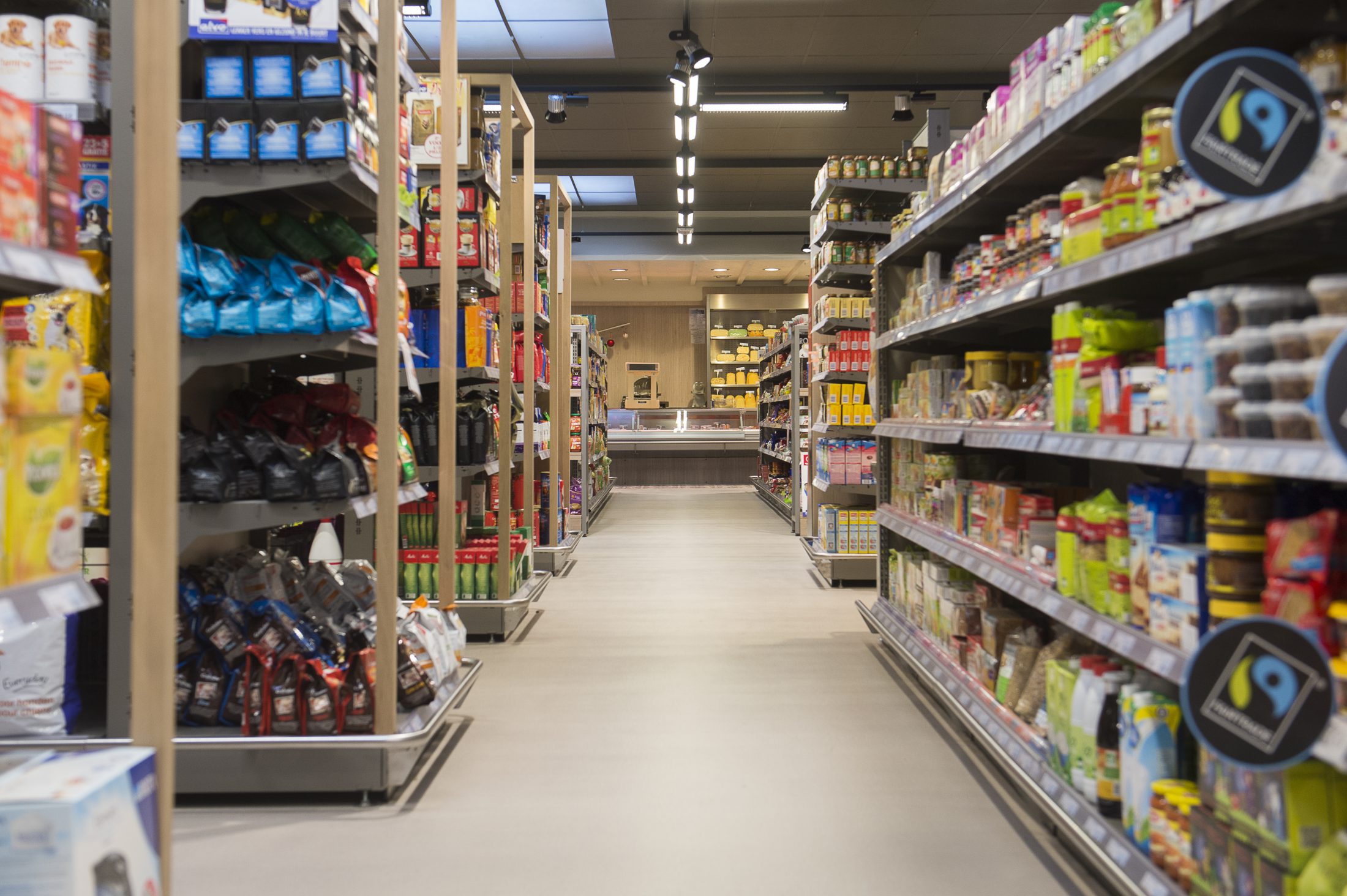 Het vertrouwde gevoel van de Alvo Supermarkt behouden door het juiste sfeerlicht te combineren met het nieuwe interieur.