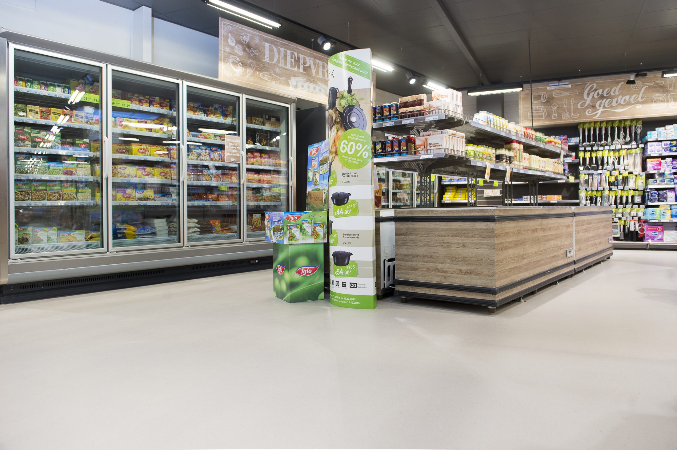 De vernieuwde winkel geeft een warm gevoel, dat wordt versterkt door de ledverlichting die de producten alle eer aan doen. Product verlichting die de koopwaar weergeeft op z’n best, uitgerust met de nieuwste technologie. Het accent ligt op onthaasten, waarbij boodschappen doen een aangename activiteit wordt.