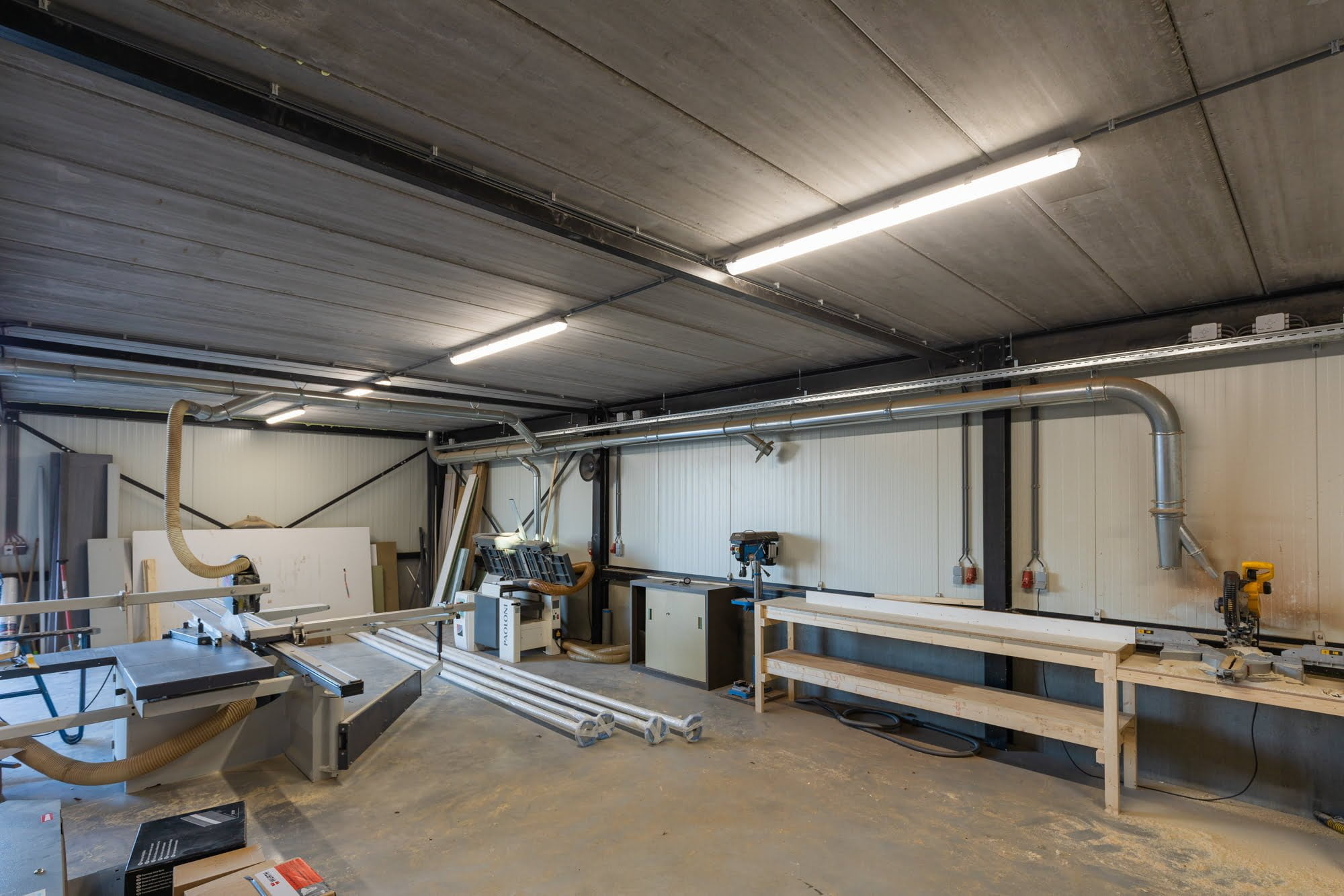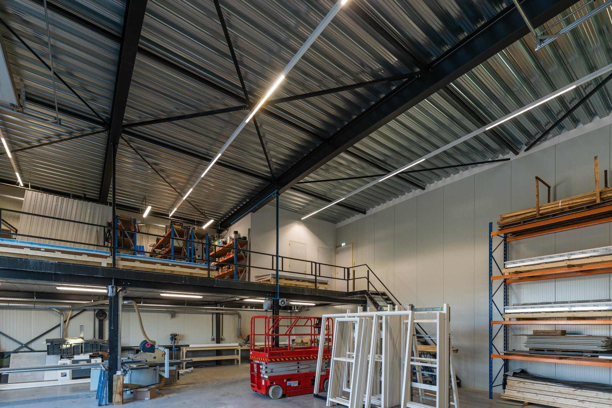 Bouwbedrijf Leemskuilen was op zoek naar robuuste verlichting om de werkplek en het magazijn te verlichten. Omdat er precisiewerk met gevaarlijke machines wordt uitgevoerd is voldoende betrouwbaar verlicht van groot belang.