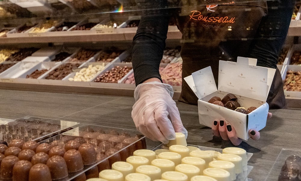 Echte ambacht als het gaat om chocolade. Je bestaat niet voor niets meer dan 50 jaar. Het familiebedrijf Rousseau Chocolade bestaat uit meer dan twintig vestigingen, verspreid over Limburg en Noord -Brabant. Op dit moment is Rousseau Chocolade bezig met een herinrichting van de winkels om de huisstijl eenduidig door te voeren, met de chocolade centraal. Een leuke uitdaging voor het lichtplan. Chocolade is namelijk een (licht) gevoelig product. Onze designers maken daarom een speciaal plan waarbij er extra aandacht wordt gegeven aan de productpresentatie.